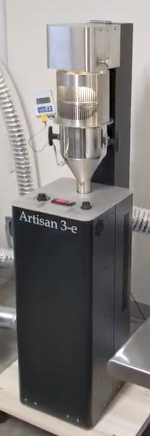 We use an Artisan 3e fluid bed roaster. A fluid bed roaster forces hot air into the hopper through the beans. The flow of hot air heats the coffee beans and provides a constant movement throughout the bean bed.